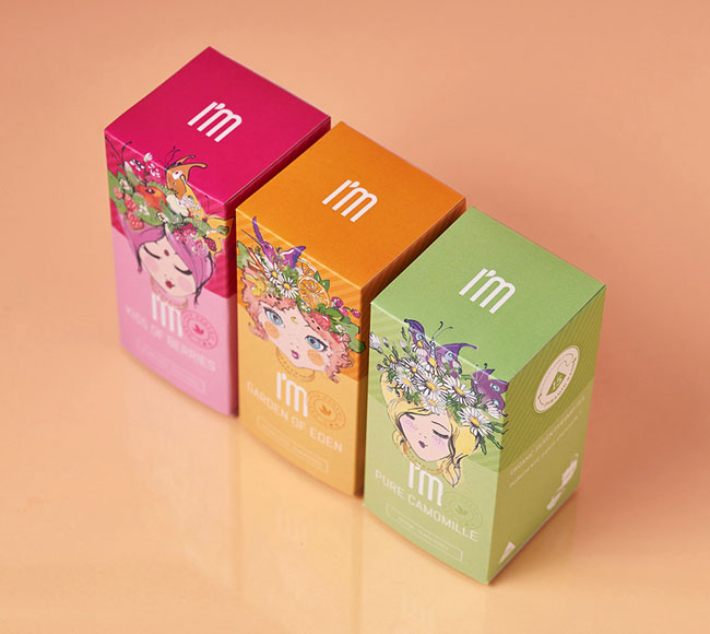 本案例为匈牙利I'M TEA高档茶品牌茶包装设计,明快的色彩、时尚的插画设计,符合白领女性的的市场定位。