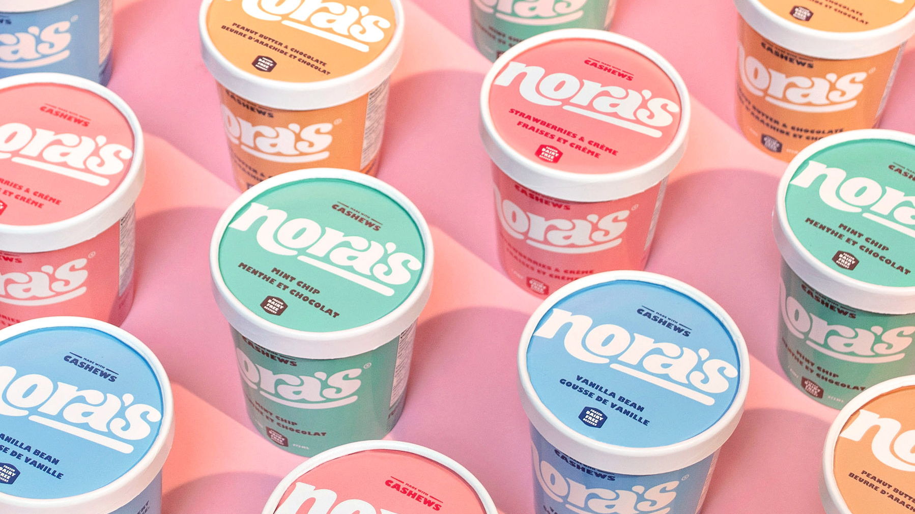 Nora's现在拥有一个自豪而乐观的品牌标识,以及一种大胆的热情色彩,一次准备好迎接世界欢迎。“ 上海亘一品牌包装设计:进口品牌冰淇淋包装设计,冰淇淋包装设计公司,食品包装设计公司,上海包装设计公司