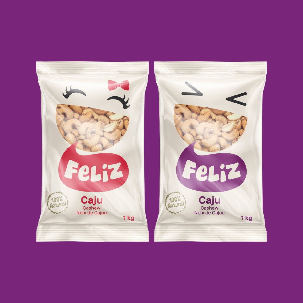 BR Design Firm为葡萄牙小吃品牌Feliz创造了有趣和有趣的坚果包装设计。亘一食品包装设计公司推荐快乐可爱的进口坚果包装设计欣赏。