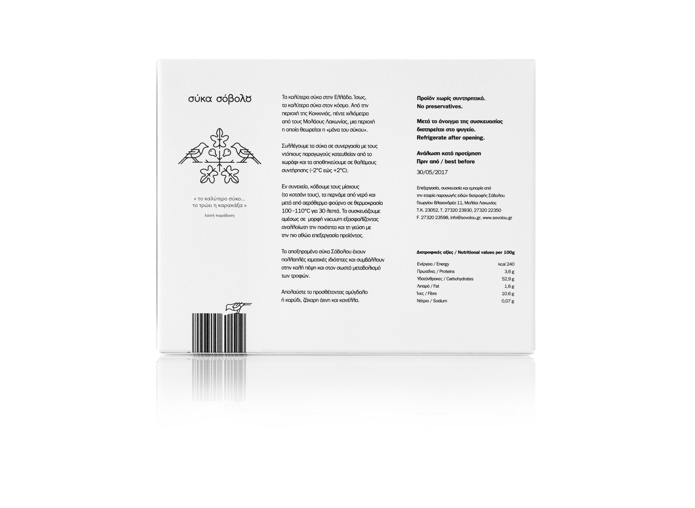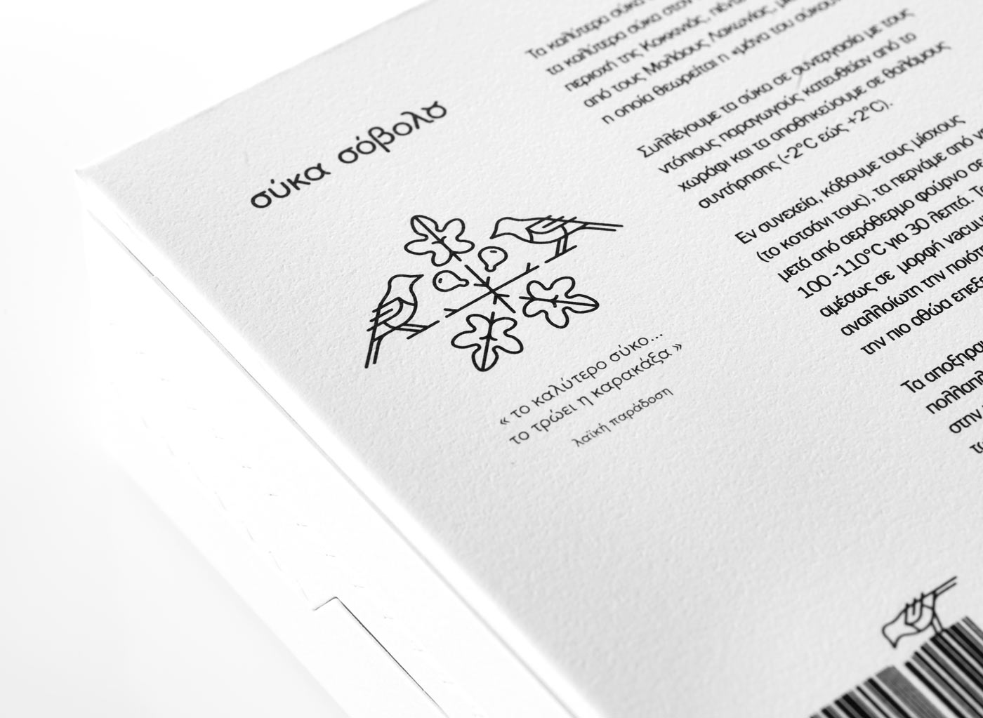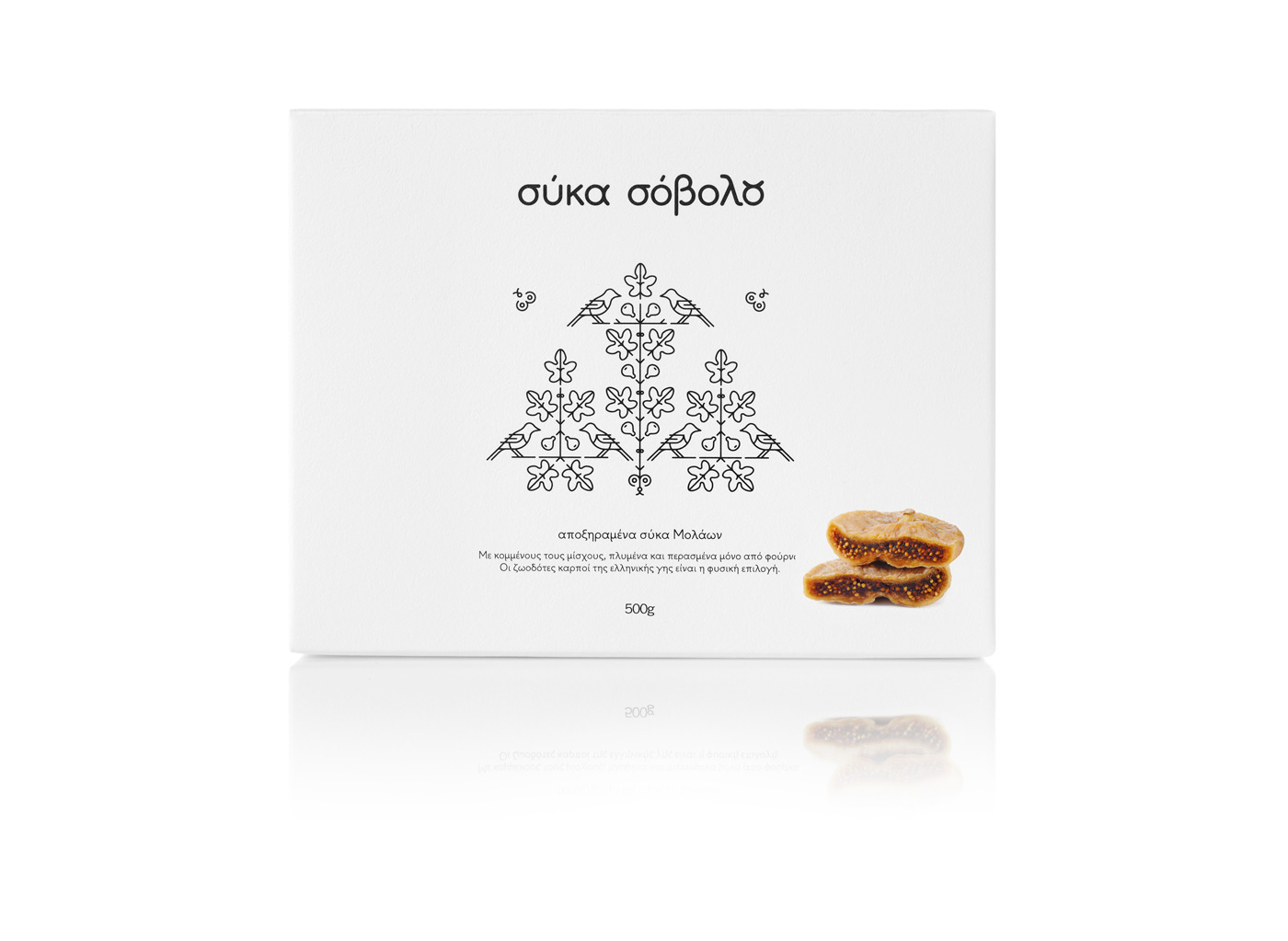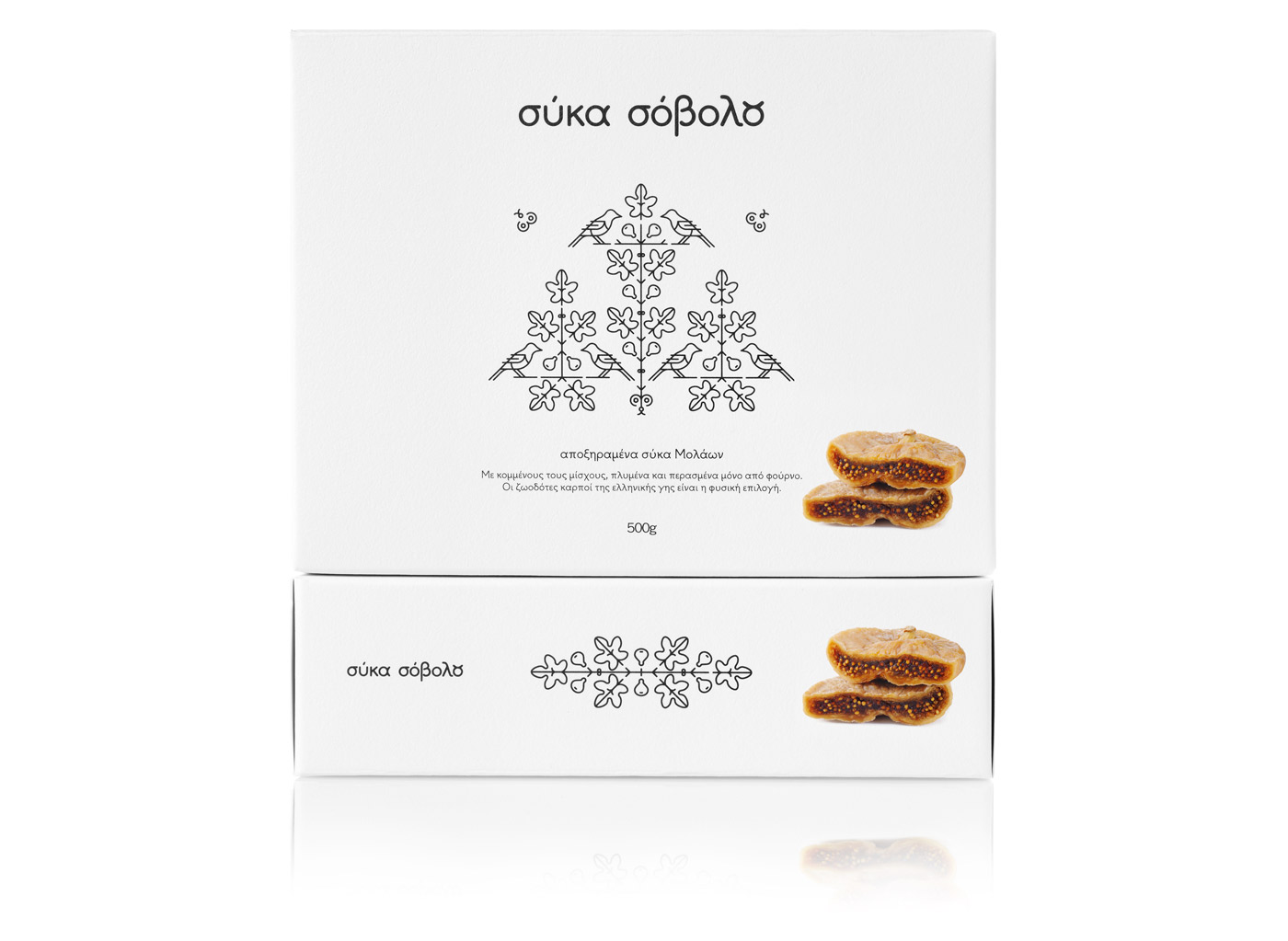 食品包装设计公司的设计思路:古代希腊文学中描述的是荷马,普鲁塔克和Theophrastus。 他们在希腊民歌中与当地的动植物一起庆祝。 我们在这个背景下与我们的客户进行了很多交谈,并在其出处(Laconian Molai)及其他地方研究了与之相关的图像。 我们使用了一个着名的希腊谚语,描述了对无花果的喜爱,并将珍贵的家用面料的图案转化为几何纹章图案。 我们受到了锻炼的启发,我们创造了两种包装变体:第一种包括切割出的无花果叶片,有趣地参考了植物在人类的原始过去中所具有的传奇隐藏作用。