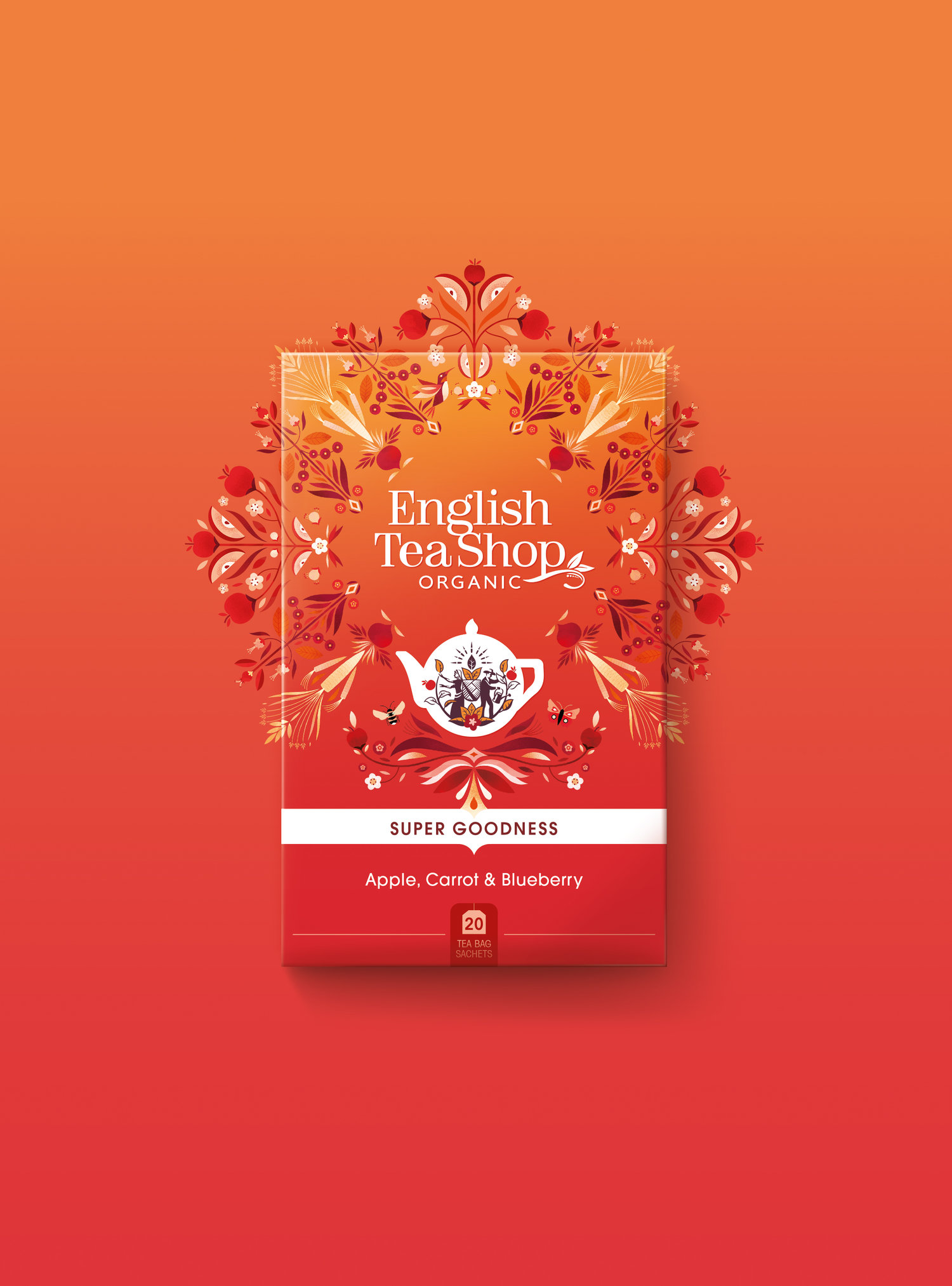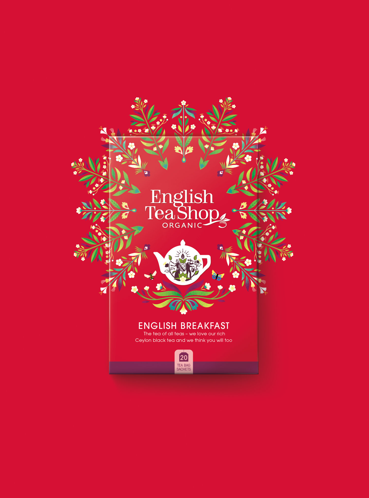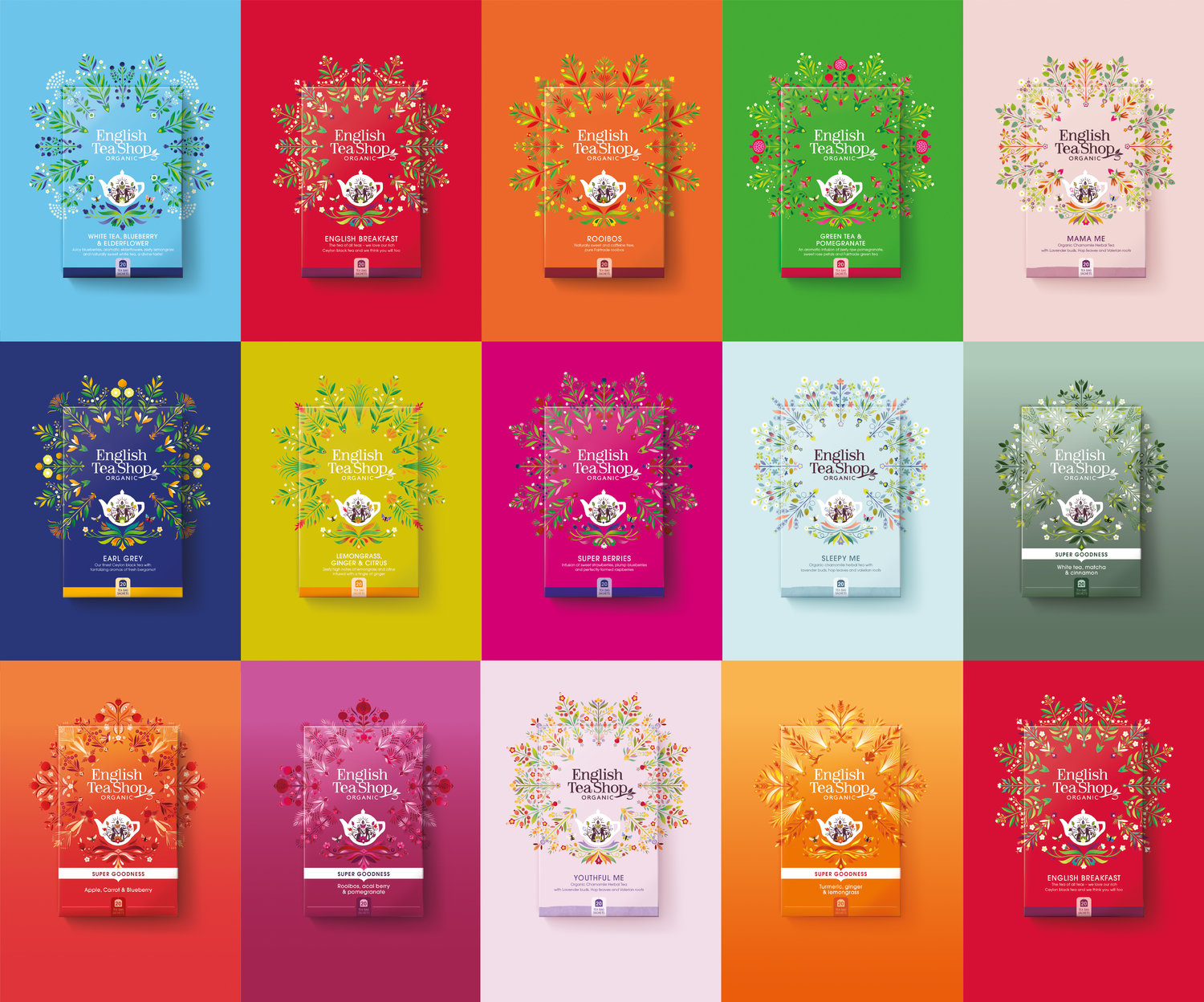 每个包装还有一个概述品牌故事的标语:您的茶爱社区。 新的茶壶图标 - 经典的圆形英式茶壶形状 - 拥有一个男人和一个女人培育茶树的优雅人物,而插画家师创造的美丽曼荼罗设计从包装的中心突然爆发,庆祝每个产品的有机成分。 新的包装插图显示了一侧连接农场和工厂的海洋,个性化,新包装设计闪耀。 它们共同构成了一个强大而无缝的设计系统,以庆祝英国茶叶店的混合物的个性和其范围的强度。